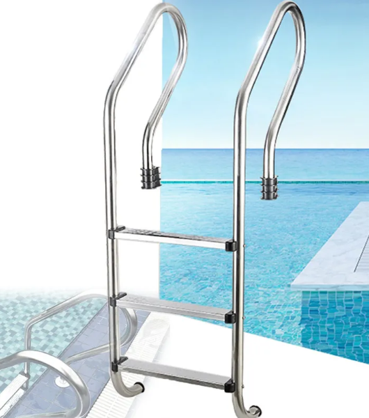 Las clásicas escaleras de tubo redondo ancladas al borde de la piscina. Están fabricadas en acero inoxidable AISI-316 o AISI-304 (según el entorno), con peldaños antideslizantes y anclajes de seguridad. Son duraderas, fáciles de instalar y compatibles con la mayoría de piscinas.