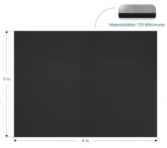 Medidas: 5 m x 8 m (ajustable al vaso con recorte si es necesario)